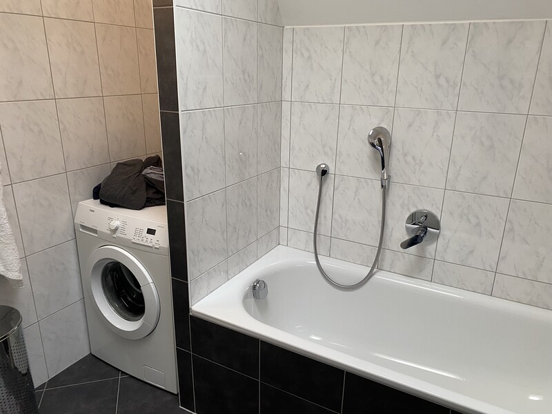 Die 3 Zimmer umfassen Gesamt 80 m2 Wohnfläche mit einem Bad mit Wanne UND Dusche, Keller und eine Südterrasse mit zusätzlich 20 m2.